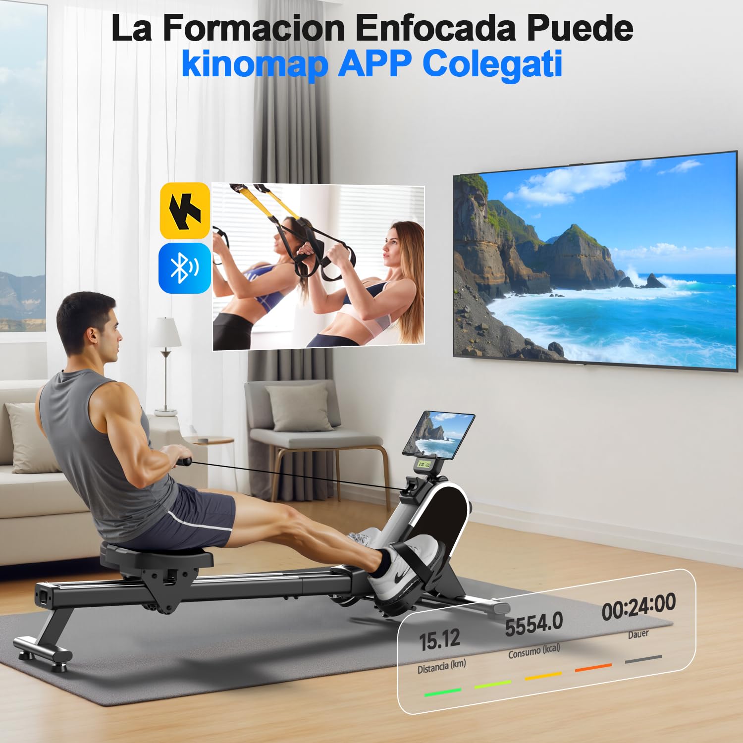- SILENCIOSO Y AHORRO DE ESPACIO:Magnético maquina de remo con una carga de hasta 160kg, la resistencia sin contacto hace que su entrenamiento sea más tranquilo y no afecte a su familia. Maquina de remo le ofrece tranquilidad y un entrenamiento agradable, las ruedas delanteras son fáciles de mover. Cuando no está en uso, coloque verticalmente para ahorrar más espacio en su hogar.