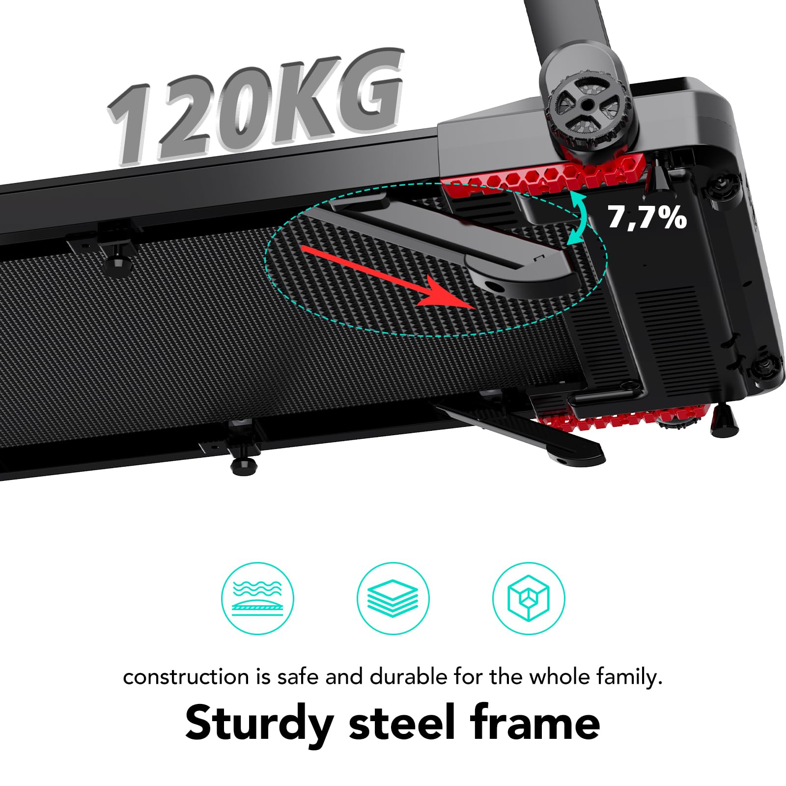 - 【Amortiguación silenciosa y antideslizante】 La cinta de correr portátil está equipada con un motor ultra silencioso y un excelente sistema de amortiguación. La cinta de correr ensanchada de 5 capas (400 x 1020 mm) con textura antideslizante multicapa y revestimiento absorbente de sonido no sólo mejora la seguridad de la cinta de correr, sino que también reduce el ruido.