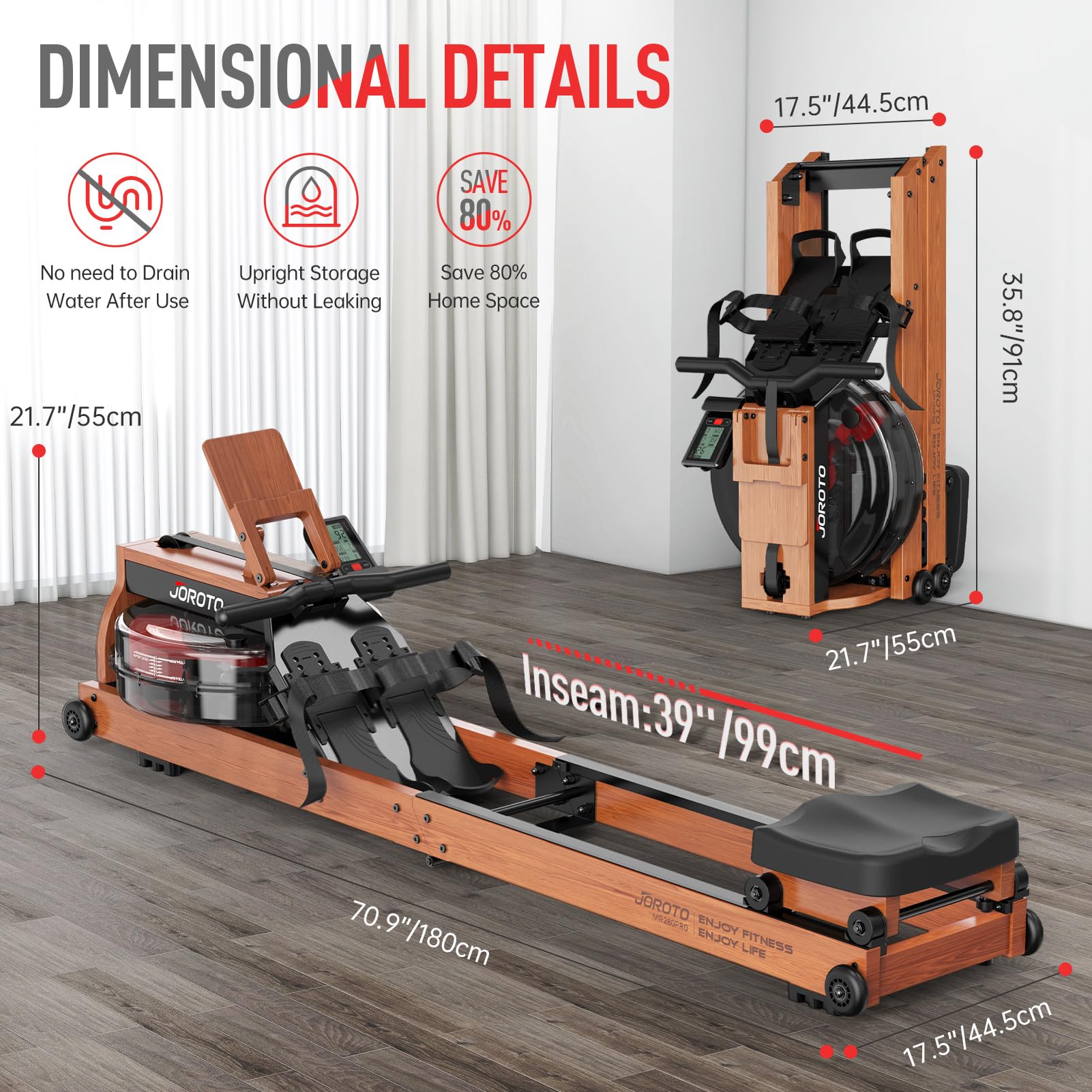 JOROTO Máquina de Remo de Agua para Casa, Máquina Remo Plegable de Madera de Roble, Capacidad de Peso de 150kg con Monitor Bluetooth, Soporte Ajustable para Tableta
