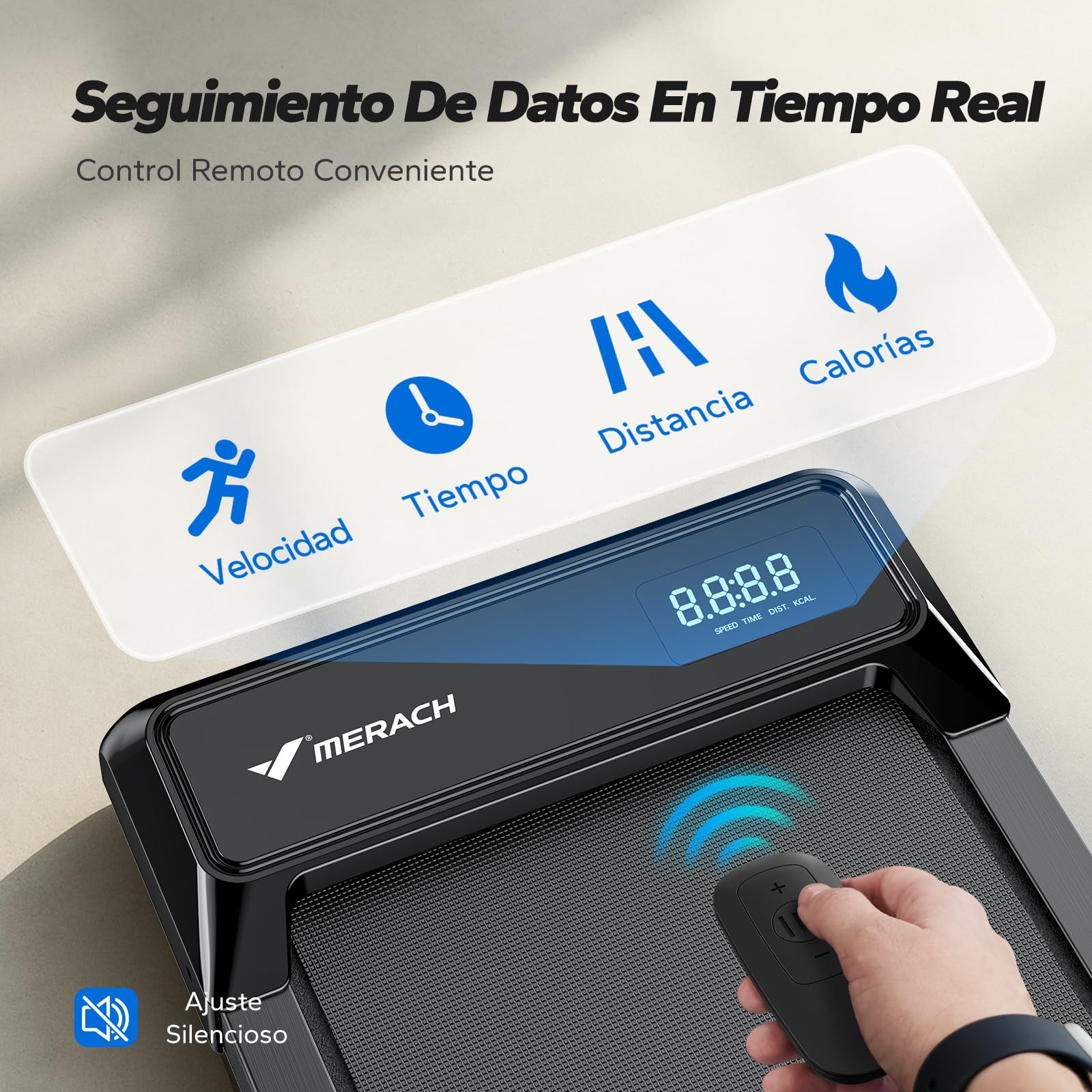 - 【Control de Fitness con Más de 1000 Entrenamientos】Conéctese a la aplicación MERACH Fitness para acceder a programas diseñados por entrenadores, realizar un seguimiento de sus datos en tiempo real, como distancia, velocidad y calorías quemadas, y disfrutar de juegos de fitness interactivos, perfectamente integrados en su walking pad.