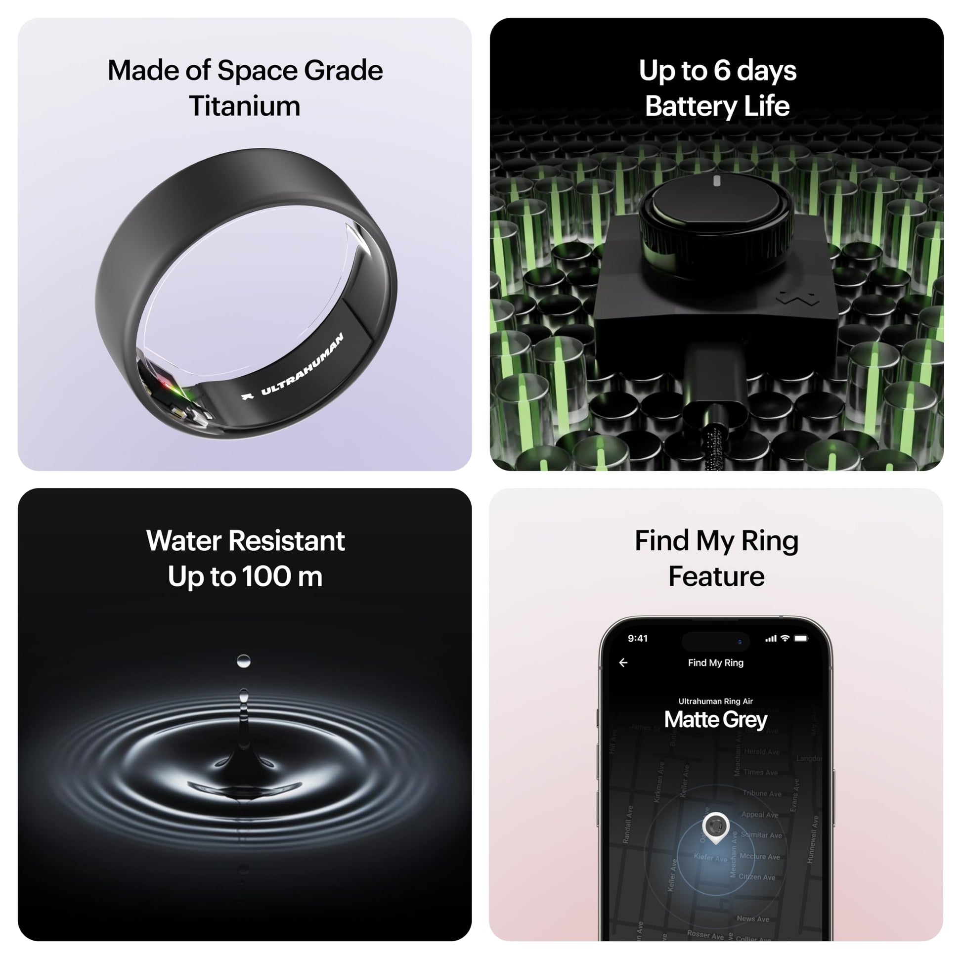 ULTRAHUMAN Ring Air: Rastreador de sueño y Actividad física, Anillo Inteligente para Mujeres y Hombres, Sin Tarifa de aplicación para Funciones estándar, 9, Gris Mate