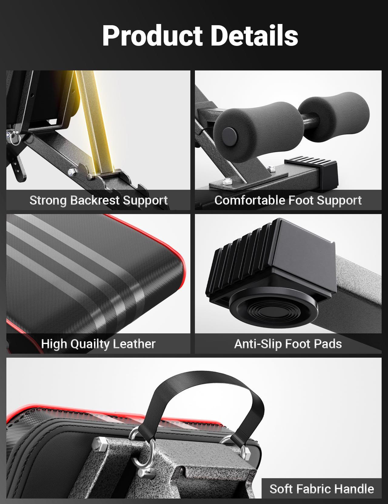 Detalles: YOLEO Banco de pesas plegable de 300 kg, multifunción, con espalda y cabeza ampliadas y soporte para la columna vertebral, banco de entrenamiento de fitness, banco inclinado con respaldo ajustable de 10 posiciones