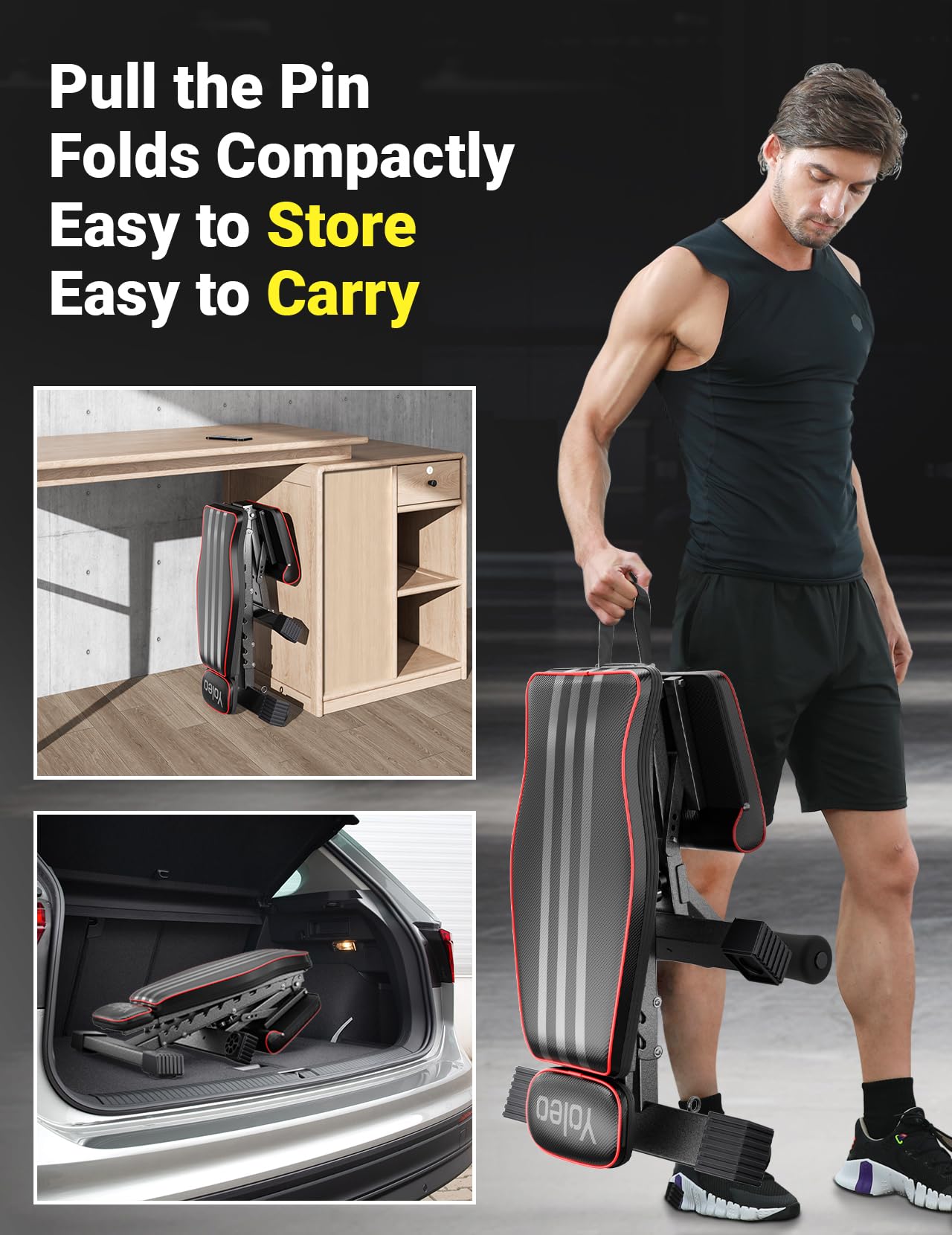 YOLEO Banco de pesas plegable de 300 kg, multifunción, con espalda y cabeza ampliadas y soporte para la columna vertebral, banco de entrenamiento para fitness, banco inclinado con respaldo ajustable