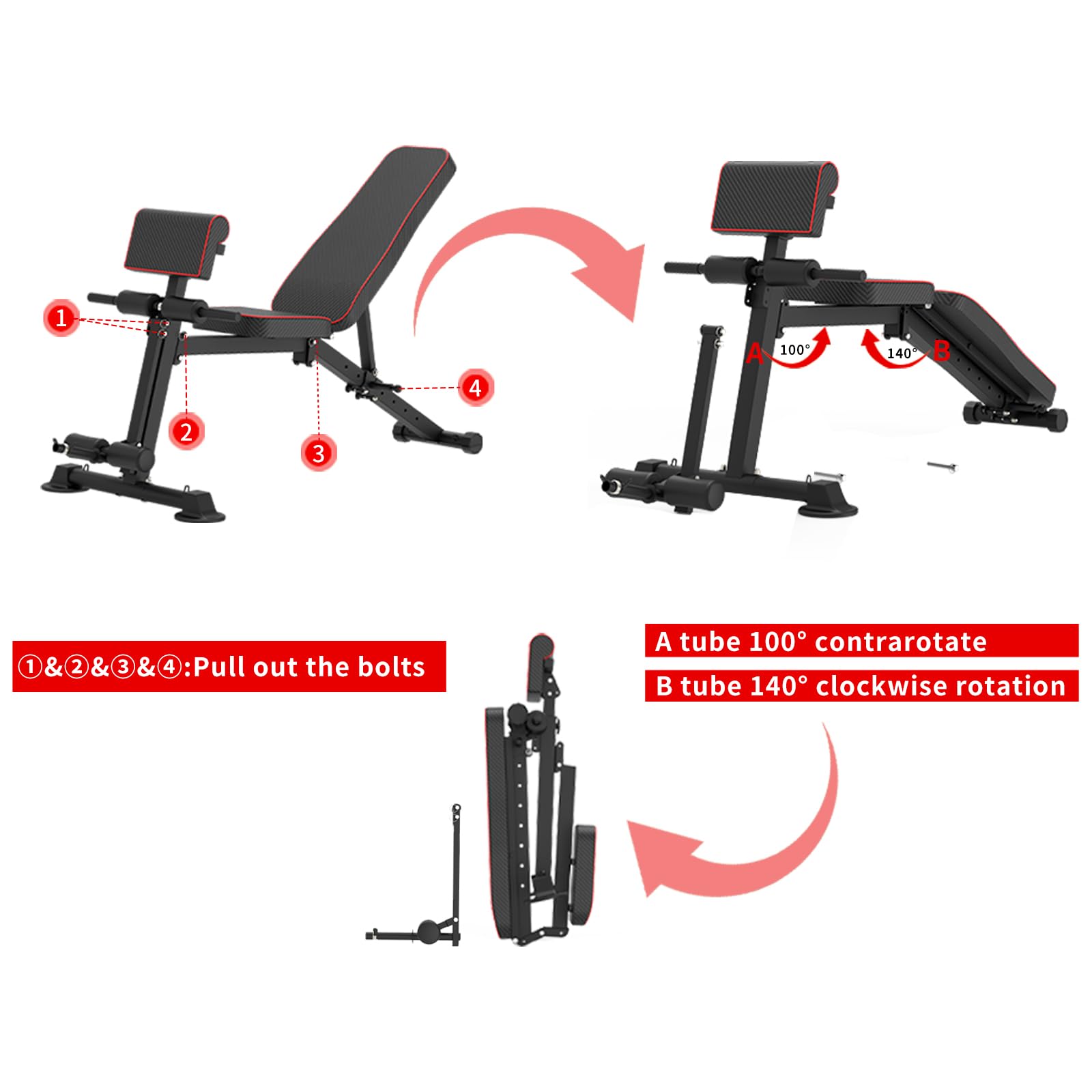 - Diseño plegable: este banco de pesas ajustable tiene un diseño plegable por lo que no afectará a tu espacio vital. El banco de pesas mide solo 14.1 pulgadas de ancho y 37.4 pulgadas de largo cuando está plegado. Puedes plegarlo y colocarlo en una esquina o detrás de tu sofá para ahorrar espacio después del entrenamiento.
