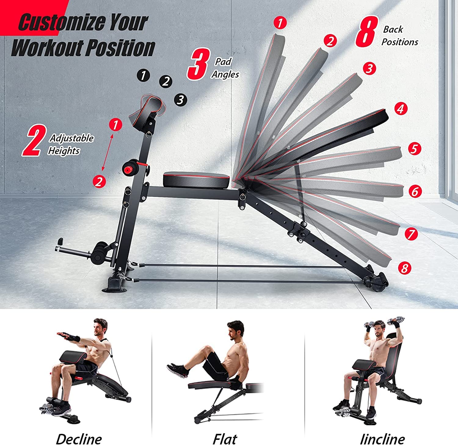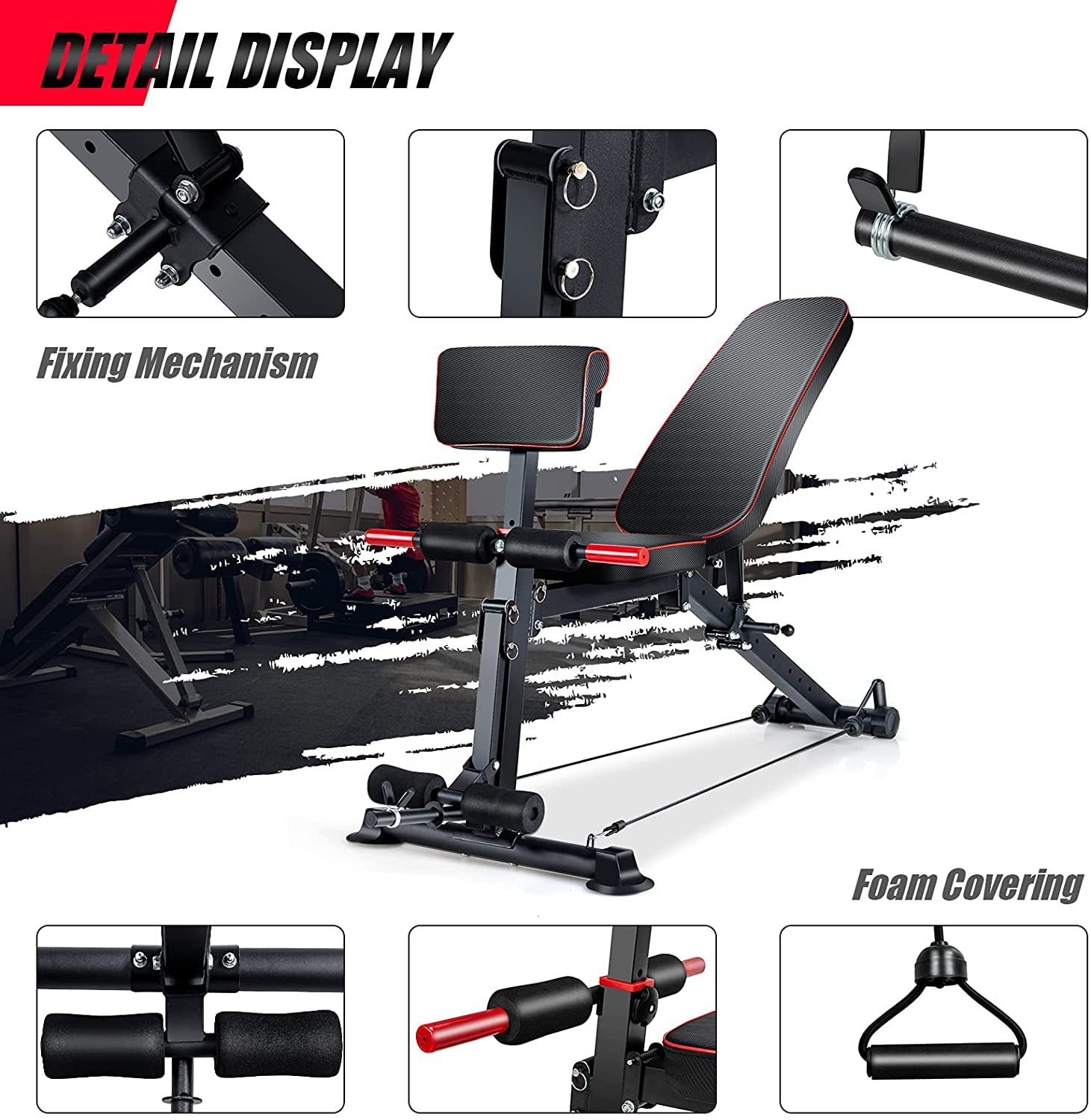 - Entrenamiento de cuerpo completo: el banco de pesas ajustable es ideal para entrenamiento de adultos de tamaño completo y entrenamiento en tu pecho, hombros, espalda, abdominales, piernas y mucho más. Solo un banco de pesas puede satisfacer la mayoría de tus necesidades de fitness.